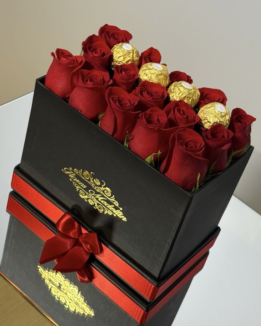 Caja horizontal rosas/Chocolates